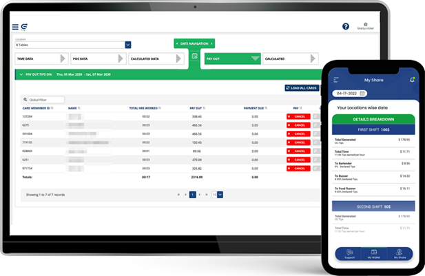 Additionally, employees have access through our mobile app, PayDayPortal, where they can not only view payouts that have been disbursed to them but can also send additional tipouts to their fellow employees; the app is exceptionally helpful in states where tipouts cannot be mandated.